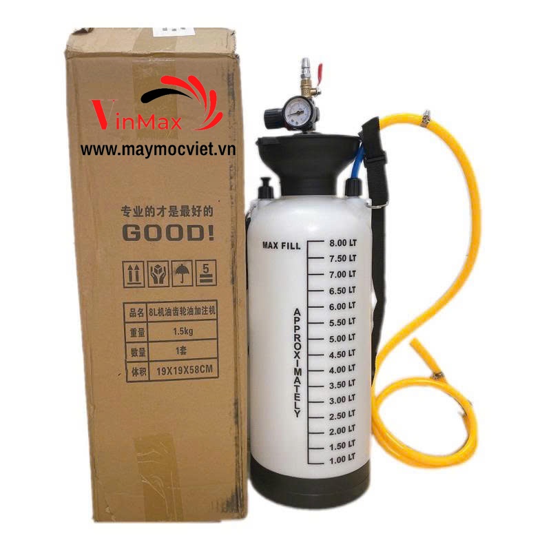 Bình bơm dầu Turbo 8L được thiết kế chuyên dụng cho việc bơm dầu cầu, dầu hộp số tự động (ATF) nhờ cơ chế sử dụng khí nén. Với dung tích 8 lít và khả năng chịu áp suất cao, thiết bị này giúp việc bơm dầu trở nên dễ dàng, chính xác và tiết kiệm thời gian hơn so với phương pháp thủ công.