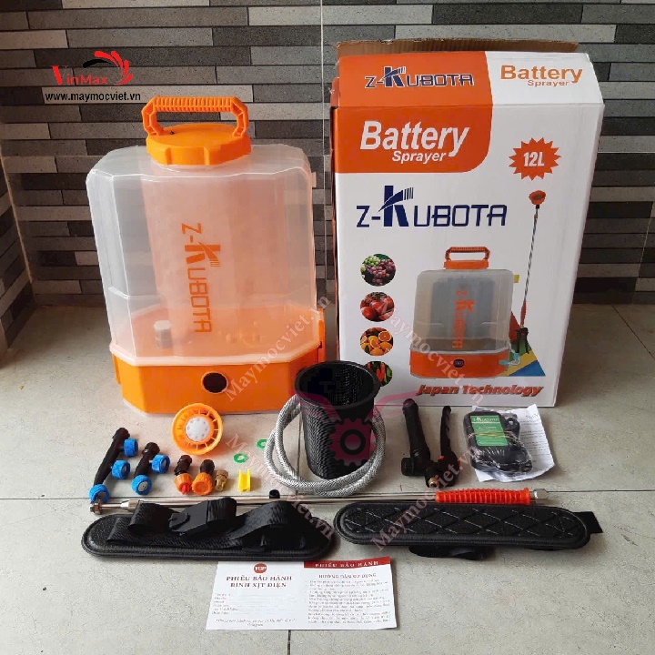 Bình xịt điện Z-Kubota 6L là dòng sản phẩm được nhiều hộ nông dân tin dùng nhờ thiết kế nhỏ gọn, bền bỉ và dễ sử dụng, phù hợp cho việc phun thuốc trừ sâu, diệt cỏ, tưới cây và khử khuẩn trong nông nghiệp lẫn đời sống hàng ngày. Sản phẩm ứng dụng công nghệ Nhật Bản tiên tiến, đảm bảo độ bền cao, phun mạnh và tiết kiệm điện năng.