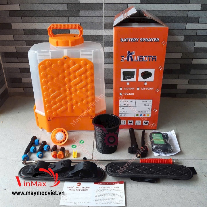| Phụ kiện đi kèm | Dây phun, cần inox, bộ đầu phun, dây đeo, sạc pin, hướng dẫn sử dụng |
