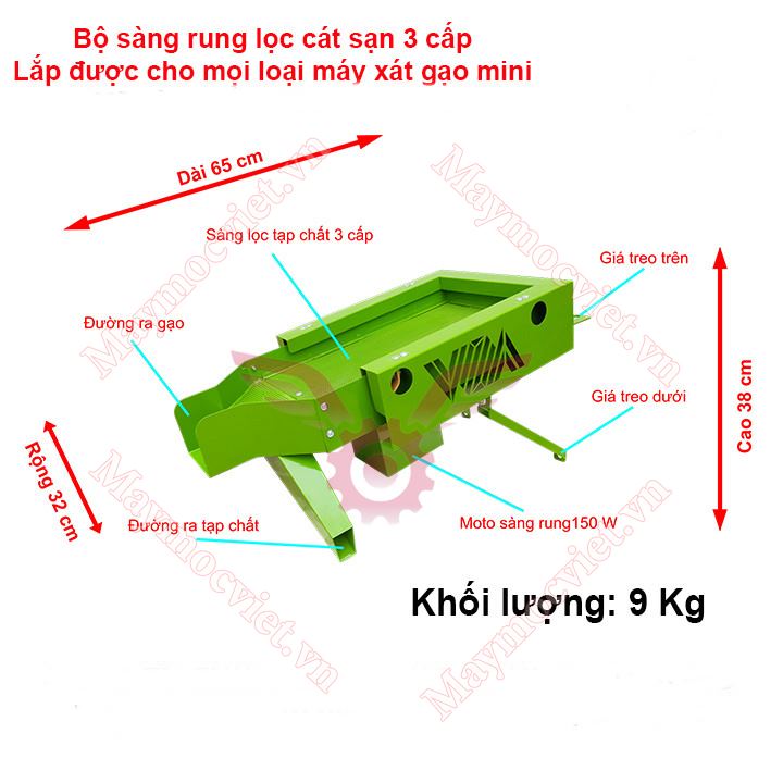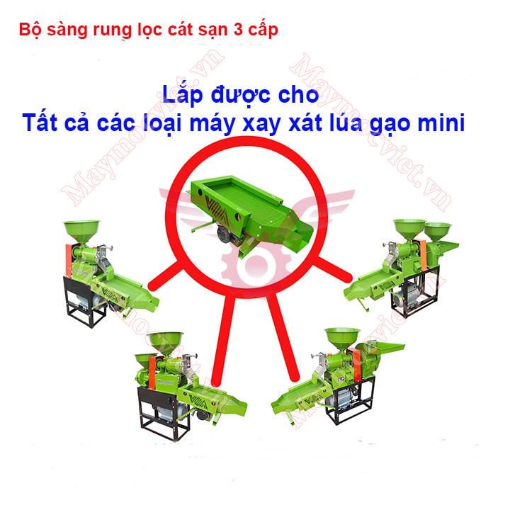 Đây là bộ sàng rung lắc dọc duy nhất trên thị trường theo nguyên lý của máy lọc sạn làm chậm quá trình trôi của gạo giúp cho các loại tạp chất như cát sạn, tấm cám được tách ra sạch sẽ hơn.