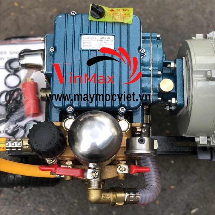 Bộ xịt rửa dây đai liền trục Vinmax VM2200 sử dụng mô tơ quấn dây đồng 100% nên động cơ cực kỳ mạnh mẽ, êm, không gây ồn.