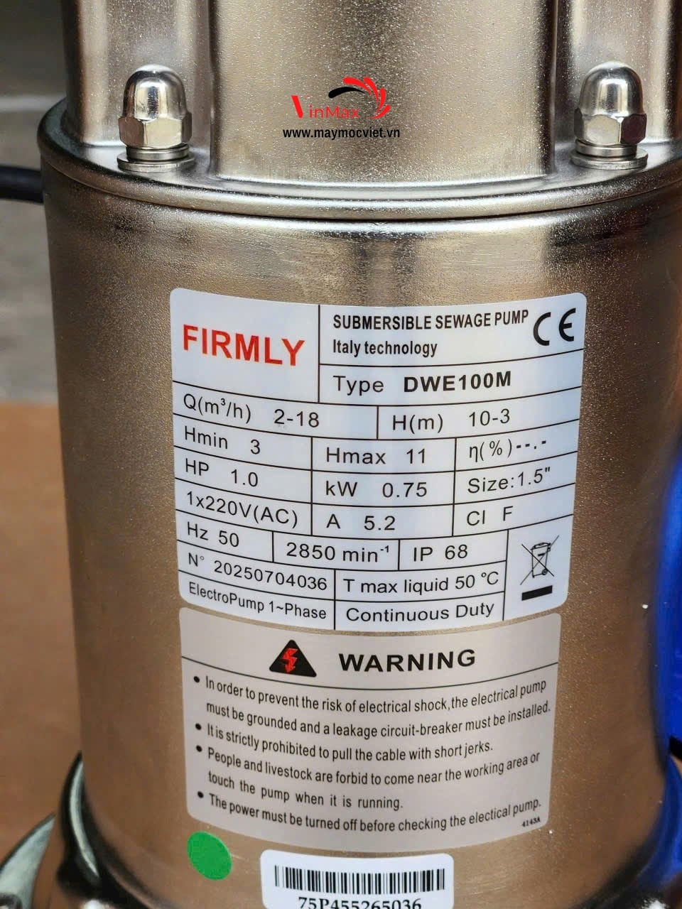 Bơm chìm thải Inox FIRMLY DWE100M là dòng máy bơm chìm nước thải được thiết kế với vật liệu inox chống gỉ, chuyên dùng để bơm nước thải sinh hoạt, nước thải công nghiệp và các môi trường có tính ăn mòn nhẹ. Với động cơ khỏe, khả năng vận hành ổn định, bơm FIRMLY DWE100M là lựa chọn tối ưu cho các hộ gia đình, trang trại, nhà máy và các hệ thống xử lý nước thải.