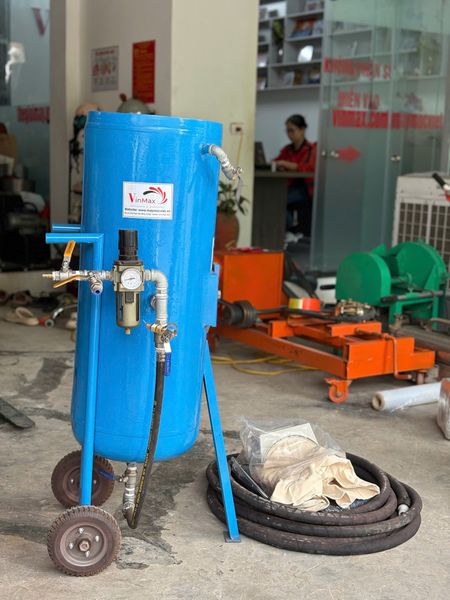 🔩 Bình chứa lớn 100L: giúp phun liên tục, phù hợp cho các công trình hoặc xưởng gia công kim loại.