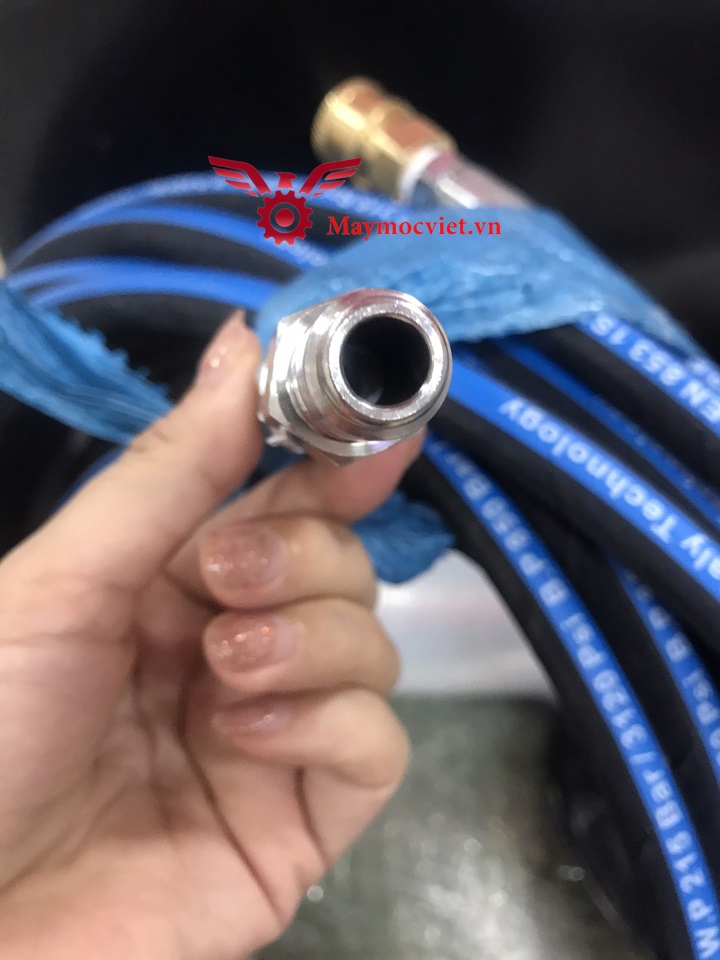 - Với chiều dài 15m cùng bố thép 2 đầu nên bạn có thể thực hiện công việc xịt rửa ở không gian rộng lớn mà không cần phải di chuyển máy quá nhiều.