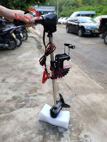 Thiết kế gọn nhẹ, dễ tháo lắp – chỉ cần kẹp vào đuôi thuyền và kết nối với ắc quy.