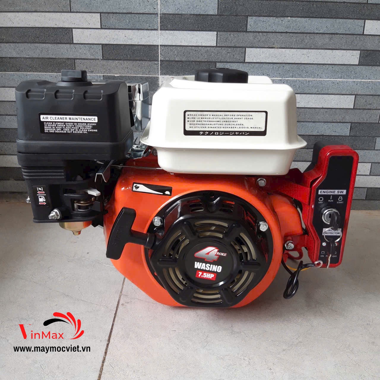 Động cơ xăng Wasino đề nổ 7.5HP cốt thẳng là dòng máy nổ 4 thì công suất mạnh mẽ, thiết kế gọn gàng, dễ lắp ráp với nhiều loại máy nông nghiệp, công trình. Với công nghệ Nhật Bản, động cơ đảm bảo khả năng vận hành bền bỉ, tiết kiệm nhiên liệu và dễ khởi động bằng đề nổ điện.