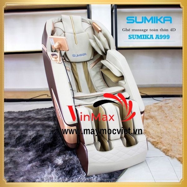Ghế massage toàn thân Sumika A999 với công dụng massage toàn thân giúp loại bỏ những căng thẳng, mệt mỏi. Lấy lại sức khoẻ, tinh thần thoải mái vui vẻ mỗi ngày ngay tại nhà, đồng thời Sumika A999 là chiếc ghế massage toàn thân thông minh, thế hệ mới nhất massgae êm ái như bàn tay chuyên gia. Loại bỏ căng thẳng, tận hưởng cảm giá thư giản thoải mái. Công nghệ massage túi khí cực hoàn hảo (vai, hông, cánh tay, bắp chân). Đặc biệt, công nghệ con lăn 4D mang đến hiệu quả massage, thư giản tuyệt vời nhất.