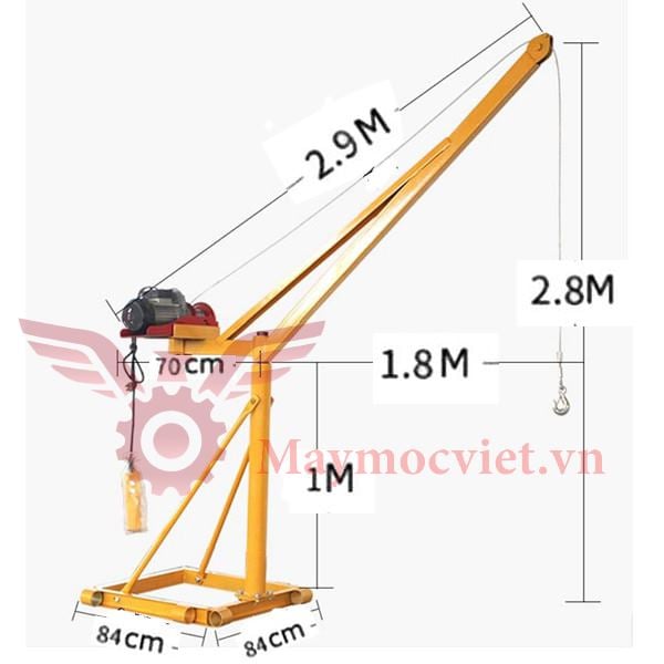 - VM800 thuộc dòng cẩu xoay mini kết hợp với tời điện tạo nên một cẩu xoay 360 độ hoàn hảo cho việc tời kéo hàng hóa, vật liệu xây dựng. Phù hợp sử dụng cho các loại tời điện có tải trọng nâng từ 200kg đến 800kg.