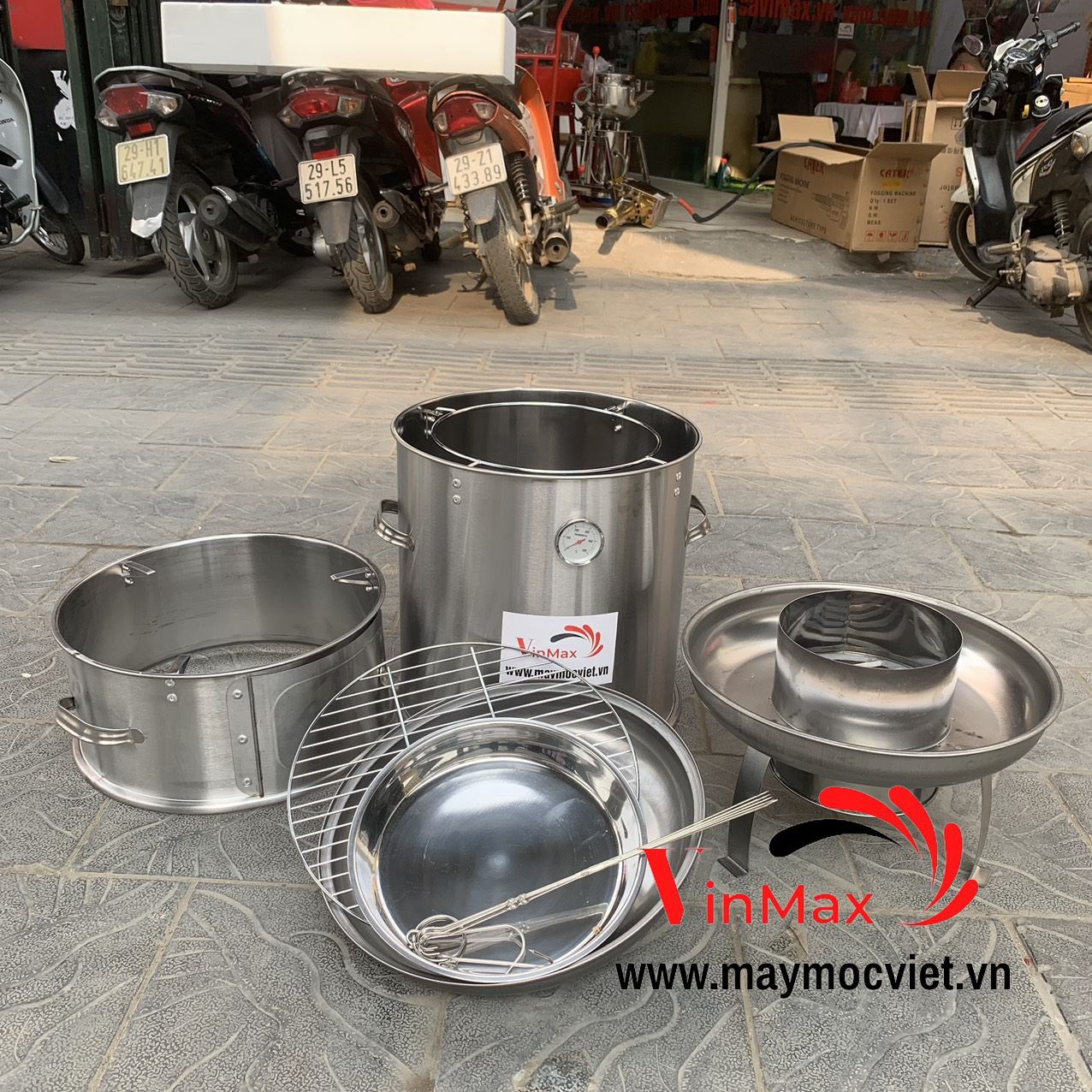 Tất cả các bộ phận đều được làm bằng inox không rỉ, được ghép nối với nhau chắc chắn và có tay nắm các bộ phận
