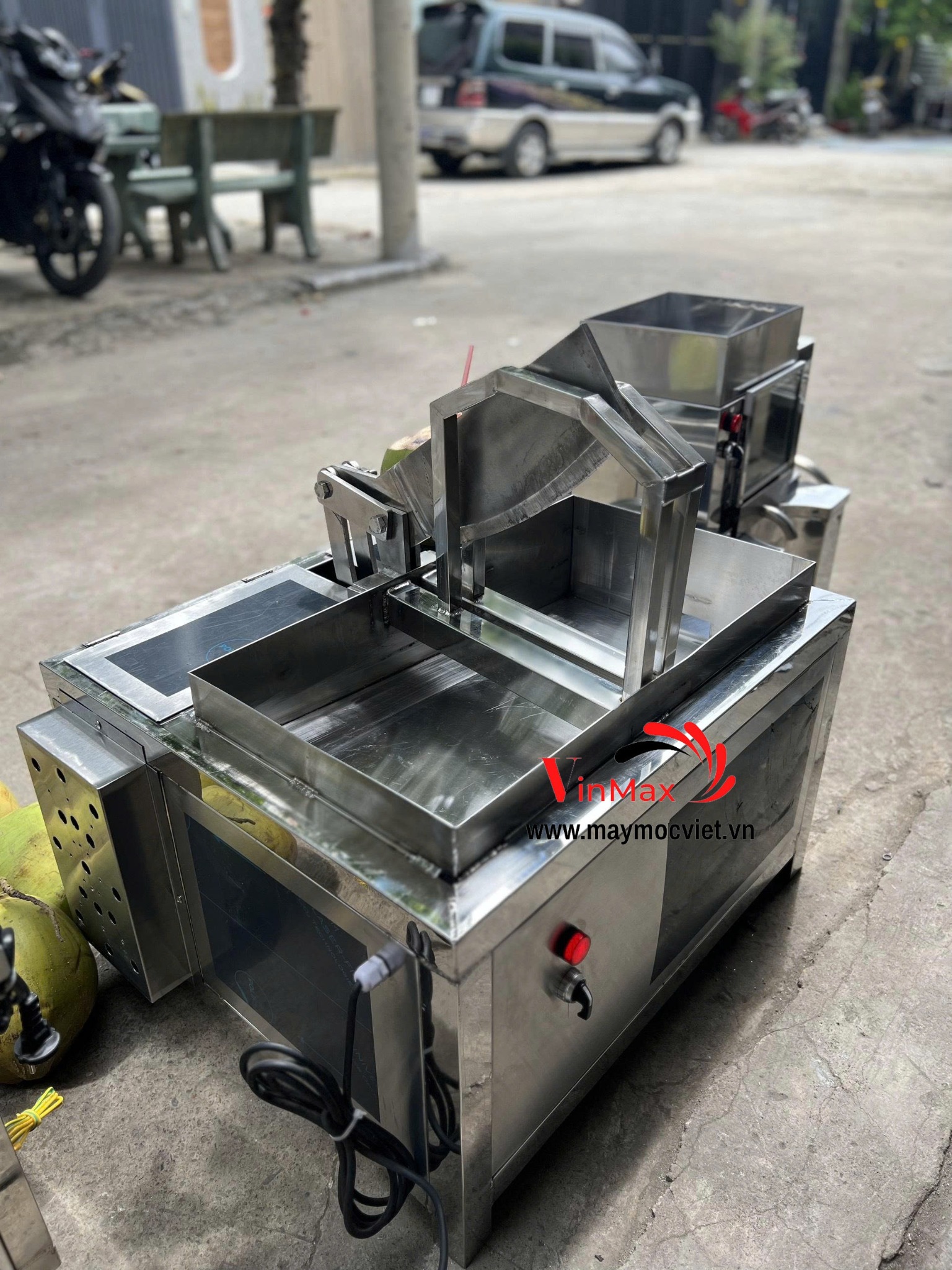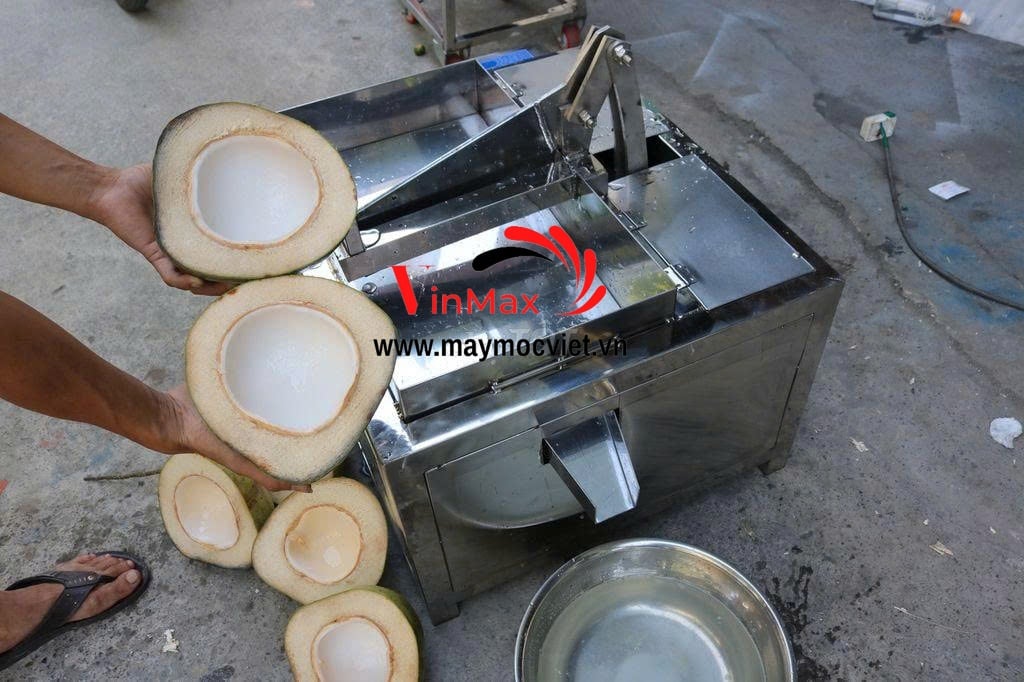 ✔ Tự động hóa hoàn toàn – chỉ cần đặt dừa vào, máy sẽ chặt đôi nhanh chóng