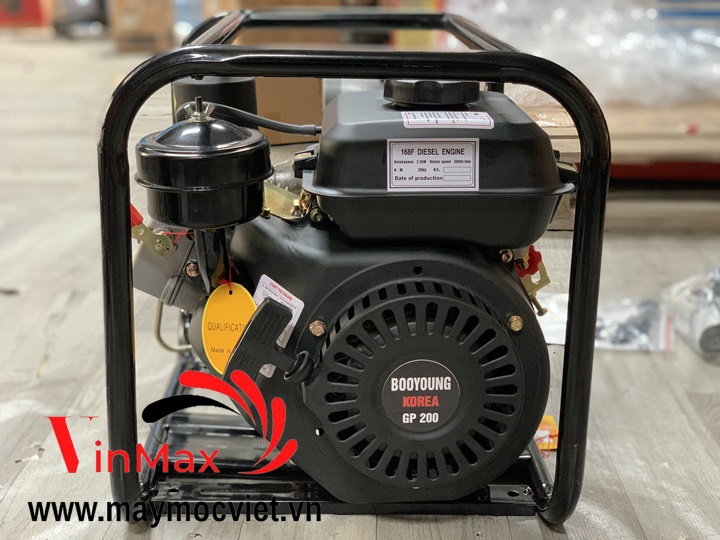 - Máy bơm nước Booyung GP200 có công suất cực đại là 4.0 kW (5.5 mã lực)/ 3600 v/p. Với suất tiêu hao nhiên liệu chỉ 1.4 lít/giờ.