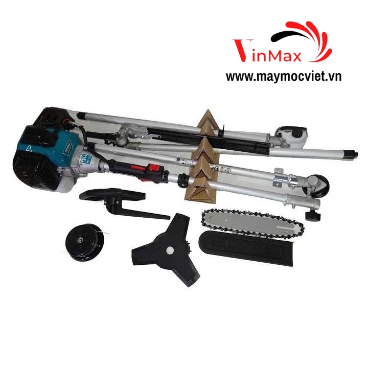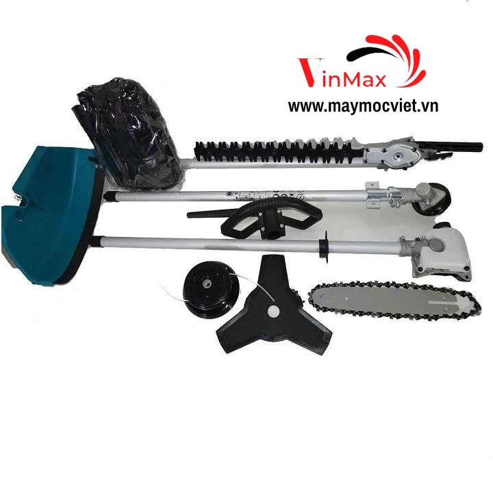 Thiết bị đa năng (4-in-1): bao gồm trimmer cỏ, lưỡi bush cutter, tỉa hàng rào (hedge trimmer) và cưa xích (chainsaw) – một bộ thiết bị đa chức năng giúp tiết kiệm chi phí khi phải mua nhiều máy khác nhau.