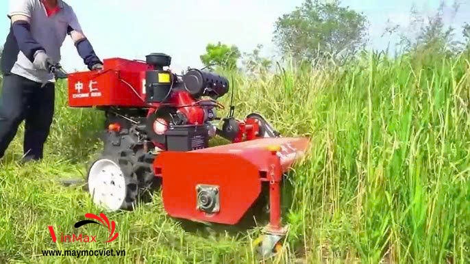 Trục băm đứng + dao sắc bén: Cắt gọn cả cỏ mềm, cỏ già, cây bụi nhỏ.