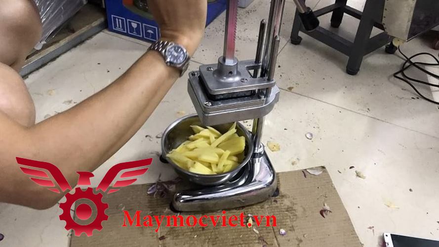 - Máy cắt khoai tây dạng đứng có thể để cắt khoai tây thành từng lát nhỏ và đều một cách nhanh chóng giúp bạn tiết kiệm được tối đa thời gian khi nấu nướng. Máy thích hợp sử dụng trong các quầy đồ ăn nhanh, quán cafe, nhà hàng, khách sạn ẩm thực, hay các hộ kinh doanh nhỏ lẻ .