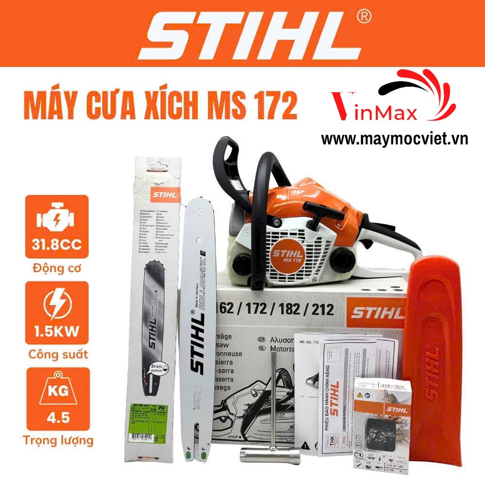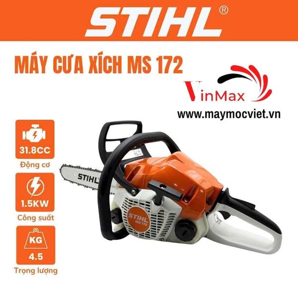 Vinmax cung cấp máy cưa xích STIHL MS 172 chính hãng, giá cạnh tranh, bảo hành uy tín. Sản phẩm luôn có sẵn, hỗ trợ giao hàng toàn quốc.