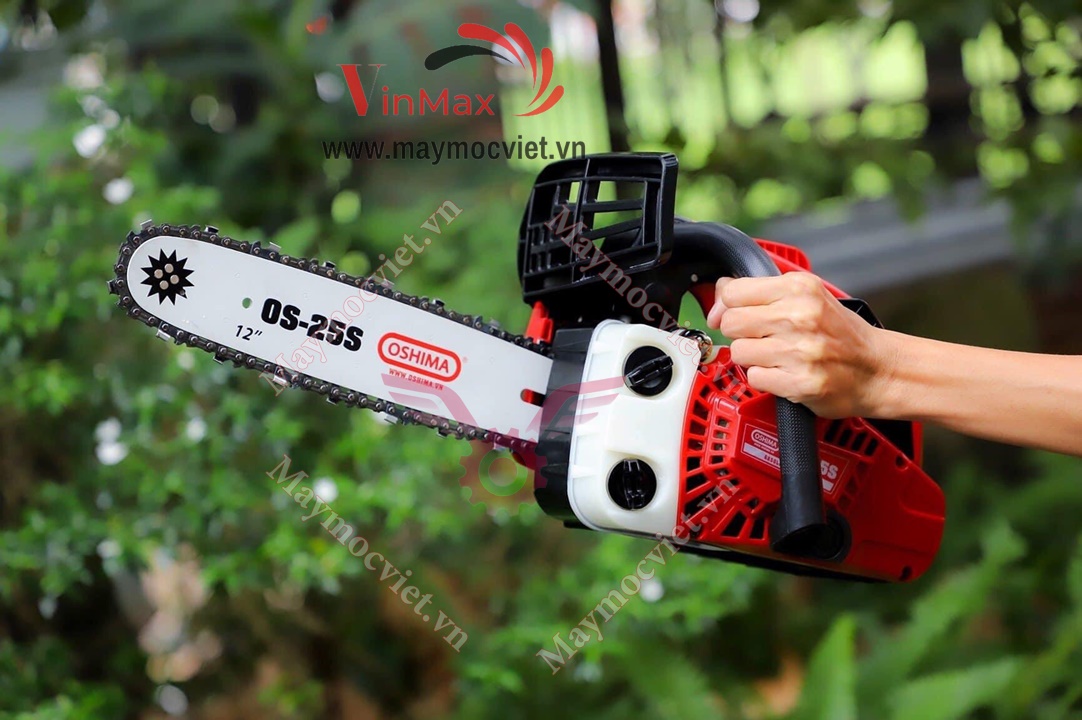 Máy cưa xích Oshima OS 25S có kích thước nhỏ gọn, dùng tỉa cành là một lợi thế.