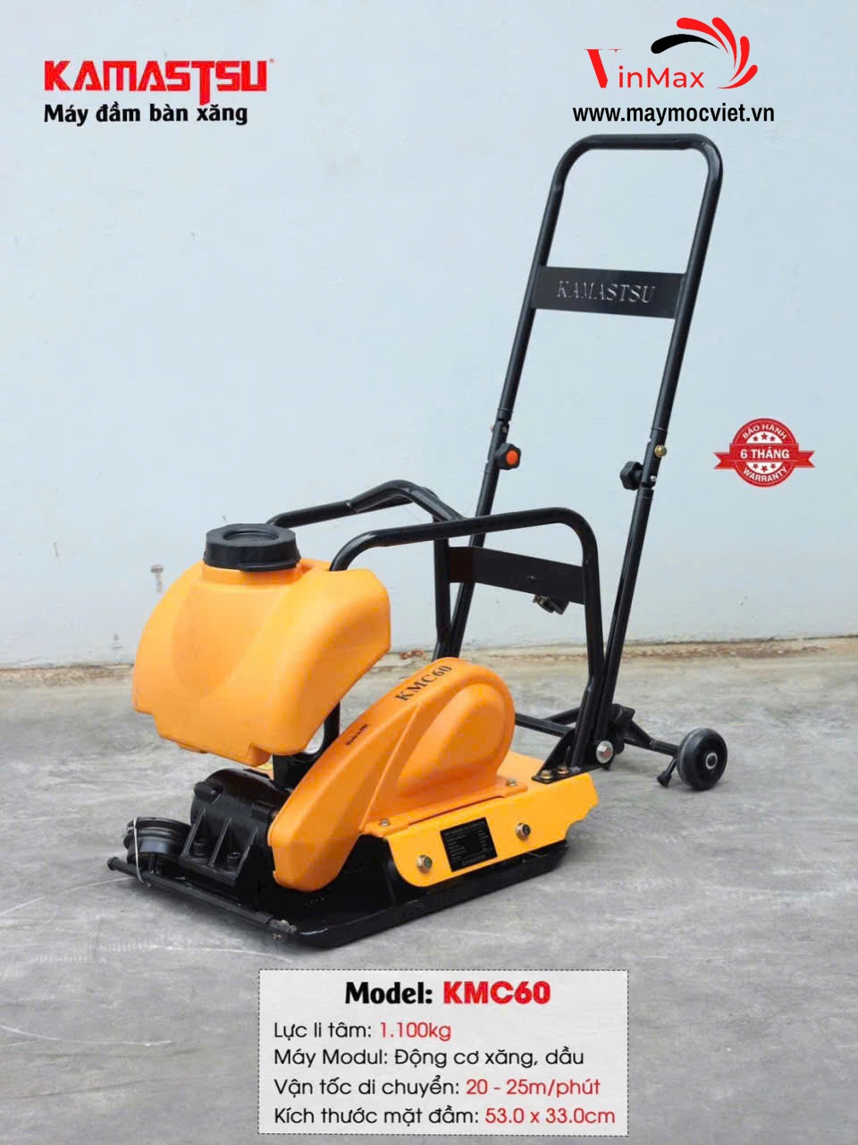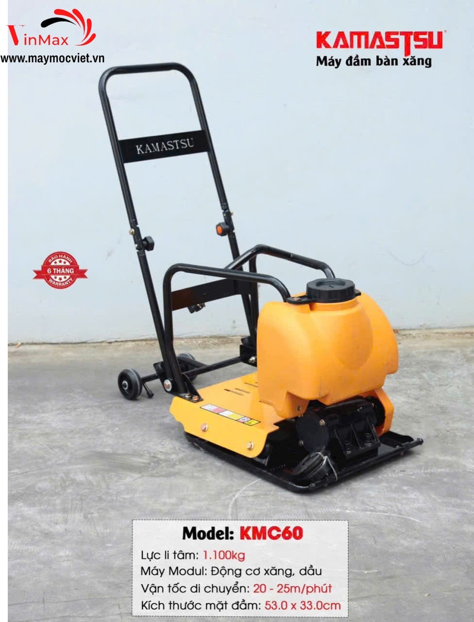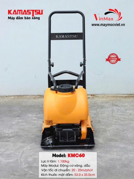Máy đầm bàn xăng Kamastsu KMC60 được thiết kế nhỏ gọn nhưng sở hữu động cơ xăng 6.5HP mạnh mẽ, mang lại khả năng đầm nén nhanh, đều và chắc chắn. Sản phẩm được sử dụng nhiều trong các công trình dân dụng, giao thông, đường sá, nền móng nhà xưởng…