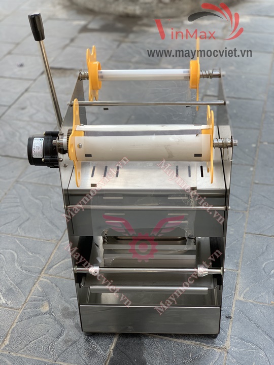 Có motor quay để cuốn cuộn màng tự động khi thao tác dán nắp hộp.