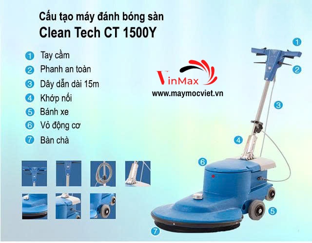 Trong các tòa nhà văn phòng, khách sạn, trung tâm thương mại hay nhà xưởng, việc duy trì sàn luôn sạch sẽ và sáng bóng là yếu tố quan trọng để tạo ấn tượng chuyên nghiệp. Để đáp ứng nhu cầu đó, máy đánh bóng sàn Clean Tech CT 1500Y được thiết kế hiện đại, mang lại hiệu quả vượt trội trong công việc đánh bóng, bảo dưỡng và phục hồi bề mặt sàn.