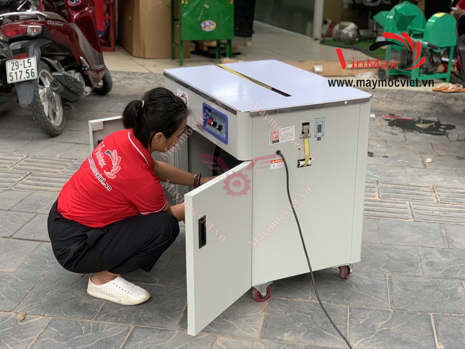 - Máy đóng đai thùng bán tự động DBJ-1 hoạt động ổn định và độ bền cao.