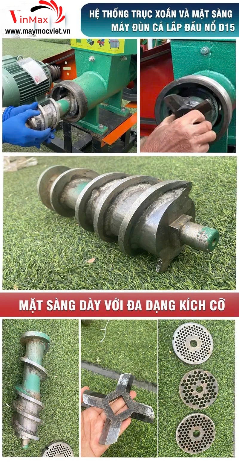 Máy đùn cá công nghiệp lắp đầu nổ D15 TBDC1500 là lựa chọn hàng đầu cho các cơ sở chế biến thức ăn chăn nuôi, trang trại lớn, hộ sản xuất thức ăn viên quy mô vừa – lớn. Với thiết kế chắc chắn, vận hành mạnh mẽ nhờ động cơ đầu nổ D15, máy cho năng suất cao, ép đùn cá – cám – nguyên liệu tươi nhanh chóng, đều và đẹp.