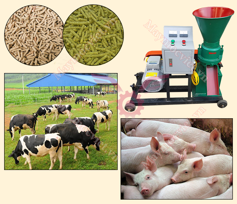 - Máy có công dụng nghiền – trộn – ép trong cùng 1 quá trình giúp bà con tiết kiệm thời gian, chi phí và chủ động thành phần dinh dưỡng trong thức ăn cho vật nuôi.