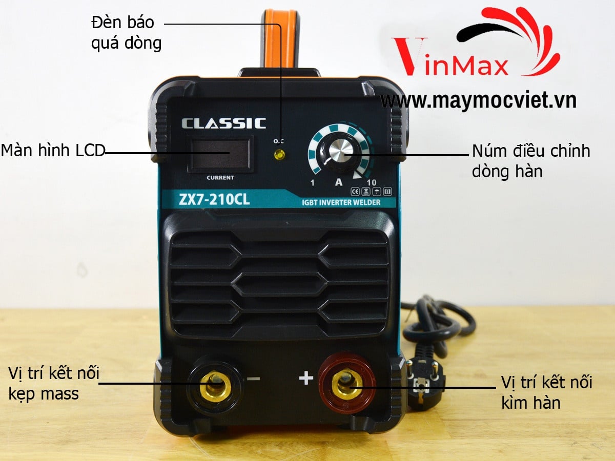 Phụ kiện máy hàn đi kèm máy hàn que Inverter Classic ZX7-210CL: Mặt nạ hàn, dây hàn 5m, dây mass 3m.