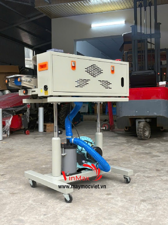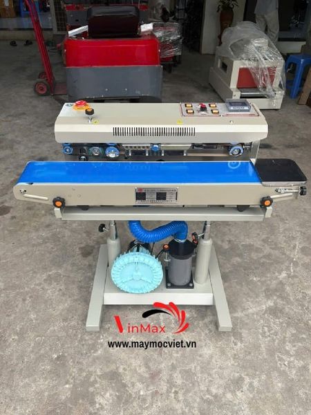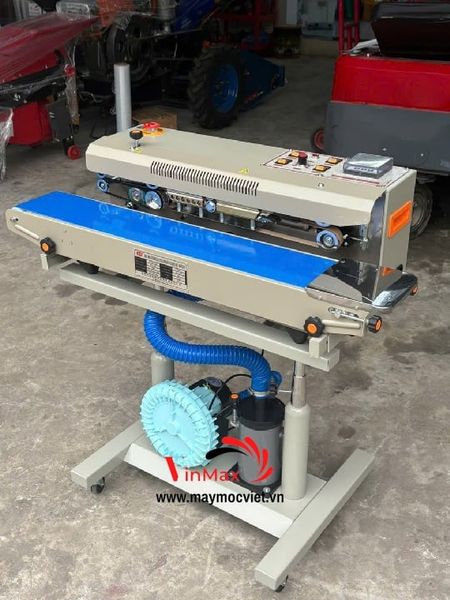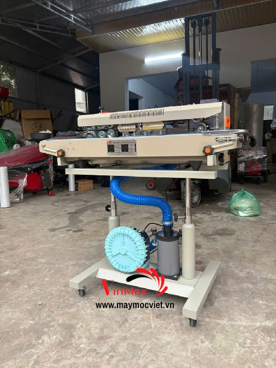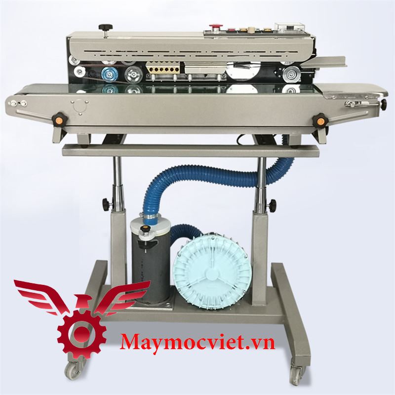 Máy hàn miệng túi liên tục có thổi khí VM DBF-1000 là dòng máy có chức năng vừa hút thổi khí và dán miệng túi liên tục thành các dạng túi phồng khí như các bao bánh mì, bim bim, hạt rang sấy…
