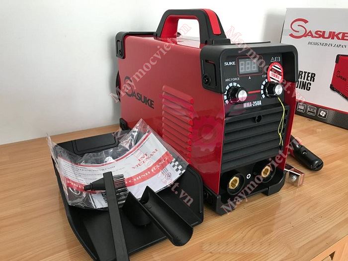 - Máy hàn que Sasuke MMA-200S ứng dụng công nghệ Nhật Bản cho khả năng làm việc ổn định với độ bền cao. Máy được làm bằng kim loại chắc chắn, sơn tĩnh điện đảm bảo an toàn khi sử dụng, khả năng chống chịu được va đập và chống thấm nước hiệu quả.