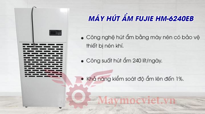 Máy hút ẩm công nghiệp FujiE HM-6240EB máy kiểm soát độ ẩm lên đến 1%. Máy dễ vận hành, lắp đặt, Và đặc biệt máy có bảo vệ thiết bị nén khí, máy hoạt động bền bỉ hơn.