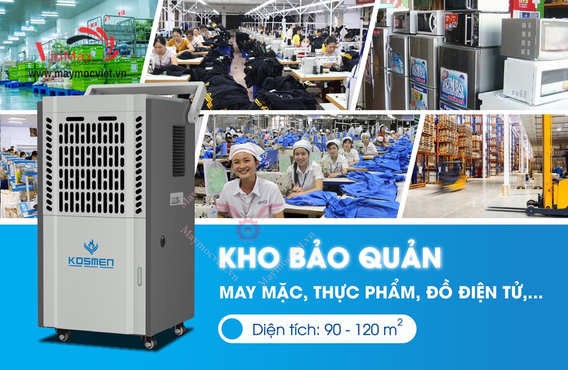 Kosmen KM-90S là dòng máy hút ẩm công nghiệp được ứng dụng trong nhiều lĩnh vực sản xuất và bảo quản kho xưởng, nhằm điều chỉnh và xử lý độ ẩm về mức yêu cầu từ 30 - 70%.