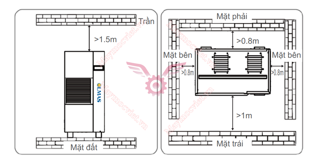 Việc lắp đặt máy cần tuân theo một số lưu ý để đảm bảo máy hoạt động hiệu quả và thuận tiện cho việc bảo trì, bảo dưỡng về sau.
