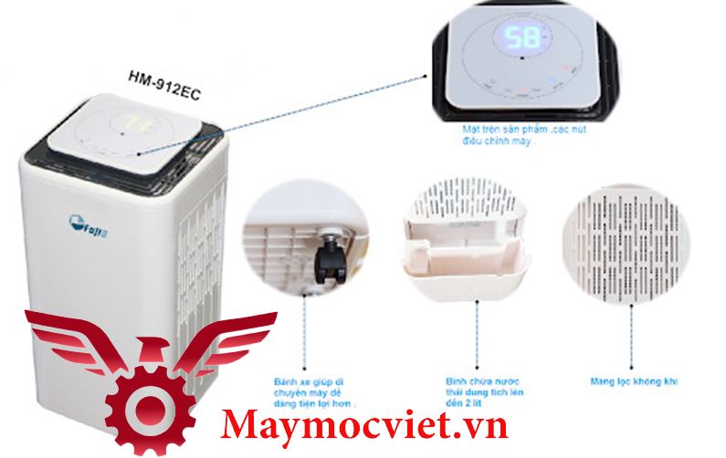 - Công suất hút ẩm 12 lít/ngày, dễ di động, tính thẩm mỹ cao, đặt trong phòng khách, phòng ngủ, phòng làm việc.