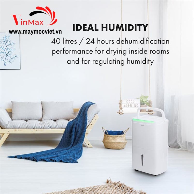 Máy hút ẩm Klarstein DryFy Connect 40: có lưu lượng lớn ,công suất 40L/ngày , loại bỏ không khí ẩm nhanh chóng và cho phép bạn hít thở thoải mái trong nhà bếp, phòng tắm hoặc phòng ngủ và cho phép bạn làm khô nhanh chóng sau khi xây dựng hoặc cải tạo.