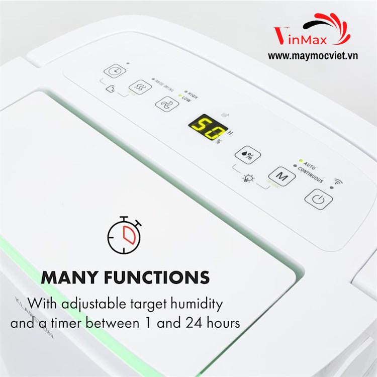 -Tự động hút ẩm: Thiết bị bắt đầu hoạt động khi độ ẩm cao hơn giá trị cài đặt 5%