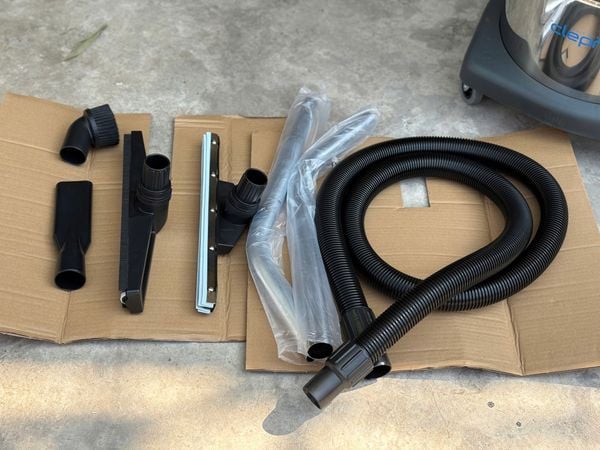 Trọn bộ phụ kiện:Ống nối inox x2, ống nhún đen dài 2.5m ,đầu hút bụi, đầu hút nước, đầu hút khe, đầu chổi tròn, lọc vải