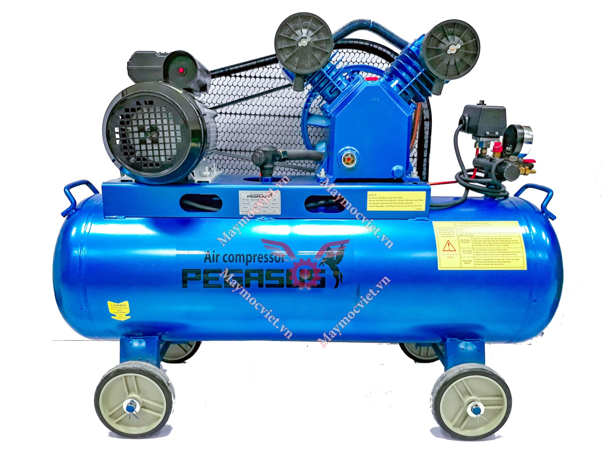 Model Pegasus TM-V-0.17/8-180L đang được trang bị động cơ 1 pha 2 trụ với rơ le công suất lên đến 2HP. Chính vì động cơ khỏe nên tạo ra được nguồn khí lớn lên đến 170l/p có khả năng đáp ứng mọi nhu cầu tại xưởng sửa chữa ô tô, xe máy.