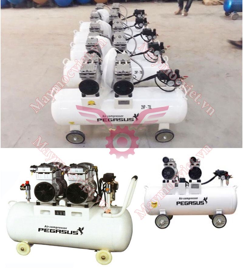Mẫu mã đa dạng. Máy nén khí không dầu Pegasus đủ các model từ dung tích bình to đến bé, phù hợp cả quy mô gia đình, phòng khám, bệnh viện