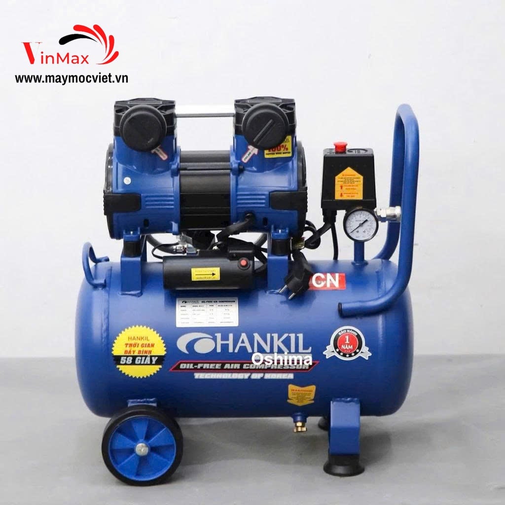 Máy nén khí không dầu HANKIL 24-2.0 (2.0HP) là dòng máy nén khí thế hệ mới, sử dụng motor dây đồng 100%, chạy cực êm, bền và cho khí nén sạch tuyệt đối. Máy được trang bị bình chứa 24L, phù hợp cho nhu cầu gia đình, spa – làm đẹp, nha khoa nhỏ, phòng thí nghiệm, tiệm sửa xe mini, xưởng kỹ thuật và các thiết bị cần khí sạch.