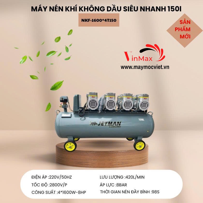 Với thiết kế dung tích 150L, trang bị 4 đầu nén mạnh mẽ, khả năng lên hơi nhanh và khí nén sạch, máy nén khí không dầu Jetman NKF-1600*4T150 chính là giải pháp lý tưởng cho những đơn vị cần khí nén chất lượng cao, ổn định và an toàn. Đây là lựa chọn xứng đáng để nâng cao hiệu suất công việc, tiết kiệm chi phí vận hành lâu dài.