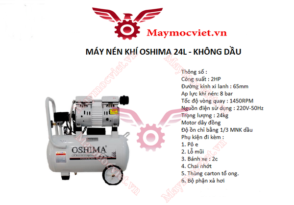 Máy nén khí không dầu Oshima 24L