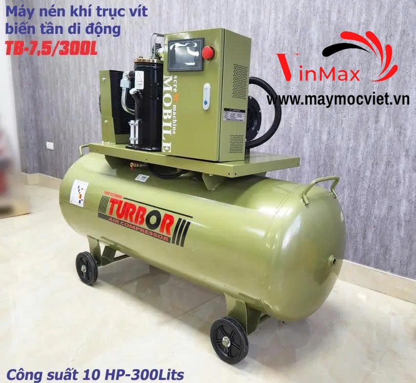 Máy nén hơi trục vít di động mini biến tần TurBor TB-7.5/300L công suất 10HP (7,5 KW) được sản xuất bởi thương hiệu TurBor danh tiếng từ Trung Quốc, nổi bật với công nghệ biến tần tiên tiến. Công nghệ này giúp điều chỉnh tốc độ motor linh hoạt, tiết kiệm điện năng và tăng tuổi thọ máy.