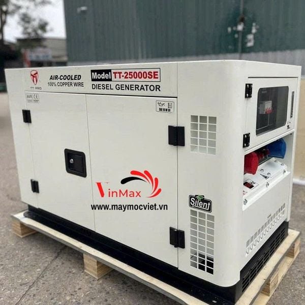 Máy phát điện chạy dầu 15KW TTPRO TT-25000SE là dòng máy phát điện công suất lớn, chuyên dùng cho gia đình, nhà xưởng, công trình xây dựng, trang trại hoặc cửa hàng kinh doanh. Máy sử dụng động cơ diesel mạnh mẽ, vận hành ổn định, tiết kiệm nhiên liệu và độ bền cao, đáp ứng nhu cầu sử dụng điện liên tục khi mất điện.