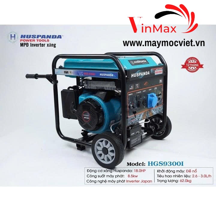 Máy Phát Điện Chạy Xăng Inverter 8.5kW HUSPANDA HGS9300I là dòng máy phát điện công nghệ cao cấp nhất của Huspanda, được thiết kế cho nhu cầu sử dụng điện lớn: gia đình có nhiều thiết bị, cửa hàng – quán ăn, kho xưởng, công trình hoặc các hộ kinh doanh dịch vụ.