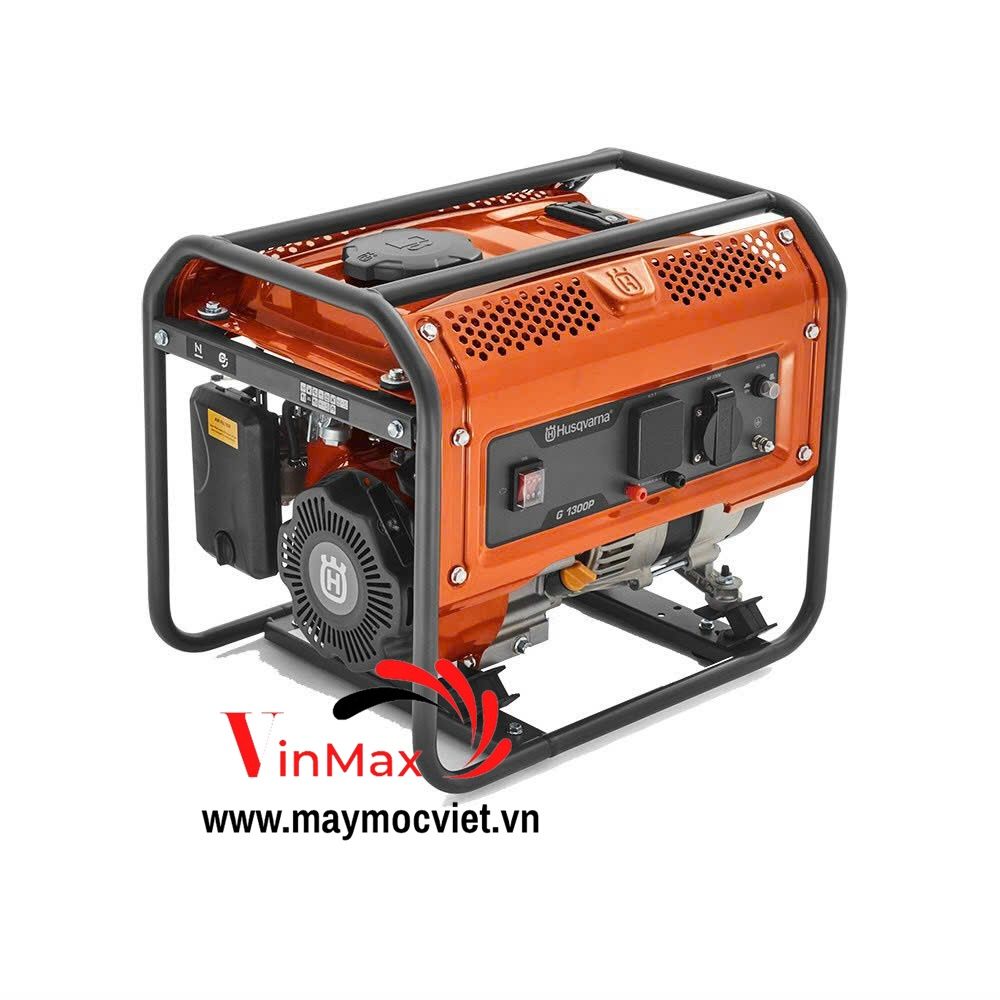 Máy phát điện Husqvarna G1300P công suất 1kW, dung tích xi lanh 98.5cm3; khởi động bằng cách giật nổ, được thiết kế đẹp và chắc chắn, mức tiêu hao nhiên liệu thấp, ít gây ồn và thân thiện với môi trường. Cấu tạo máy phát điện Husqvarna đảm bảo độ an toàn cao, có cảnh báo khi máy gặp vấn đề hoặc khi nhiên liệu bị rò rỉ, vì vậy, máy phát điện Husqvarna rất an toàn đối với người sử dụng.
