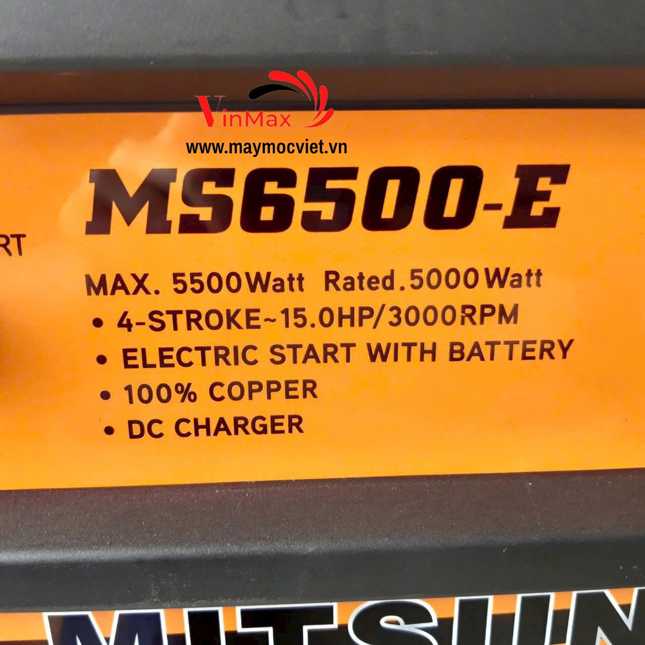 Mitsunato MS6500 là dòng máy phát điện xăng công suất 5kW được thiết kế cho nhu cầu sử dụng điện dự phòng trong gia đình, cửa hàng, văn phòng và công trình nhỏ. Với động cơ mạnh mẽ, độ ồn thấp và khả năng cung cấp điện ổn định, MS6500 nổi bật trong phân khúc nhờ giá thành hợp lý và độ bền cao.