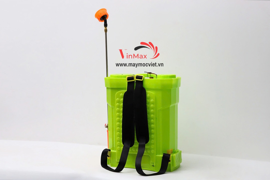Thiết kế: Máy được thiết kế gọn gàng, dễ di chuyển với bình chứa có dung tích lớn, giúp người dùng dễ dàng sử dụng trong các vườn cây, ruộng lúa hay khu vực cần phun thuốc.