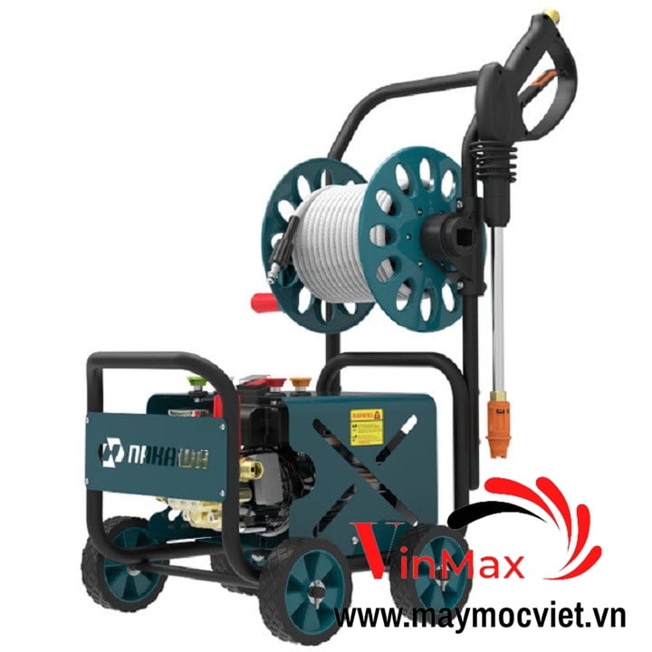– Xịt rửa khoẻ, áp lực cao, máy chạy mô tơ từ không chổi than, tự ngắt khi nhả cò súng.