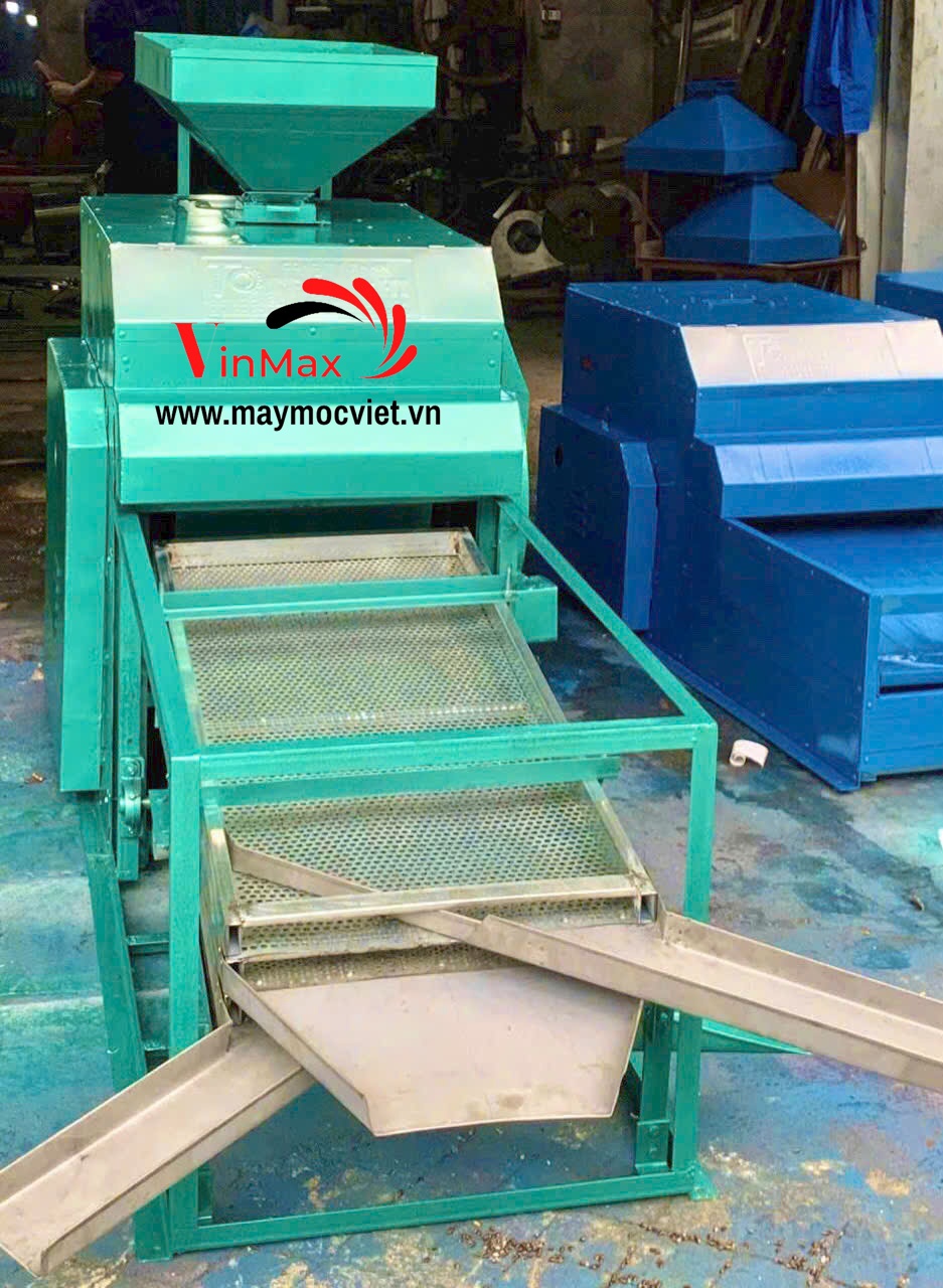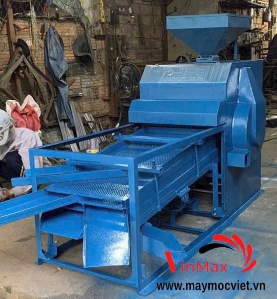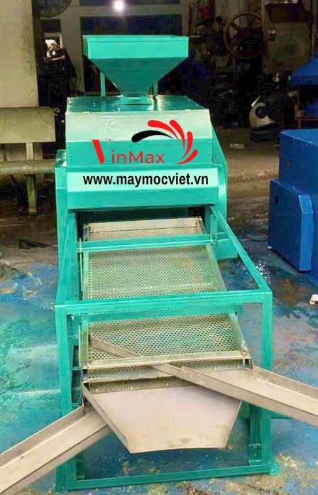 Phễu cấp liệu phía trên giúp đổ nguyên liệu dễ dàng. Cửa xả được bố trí hợp lý, thuận tiện thu hồi từng loại hạt.