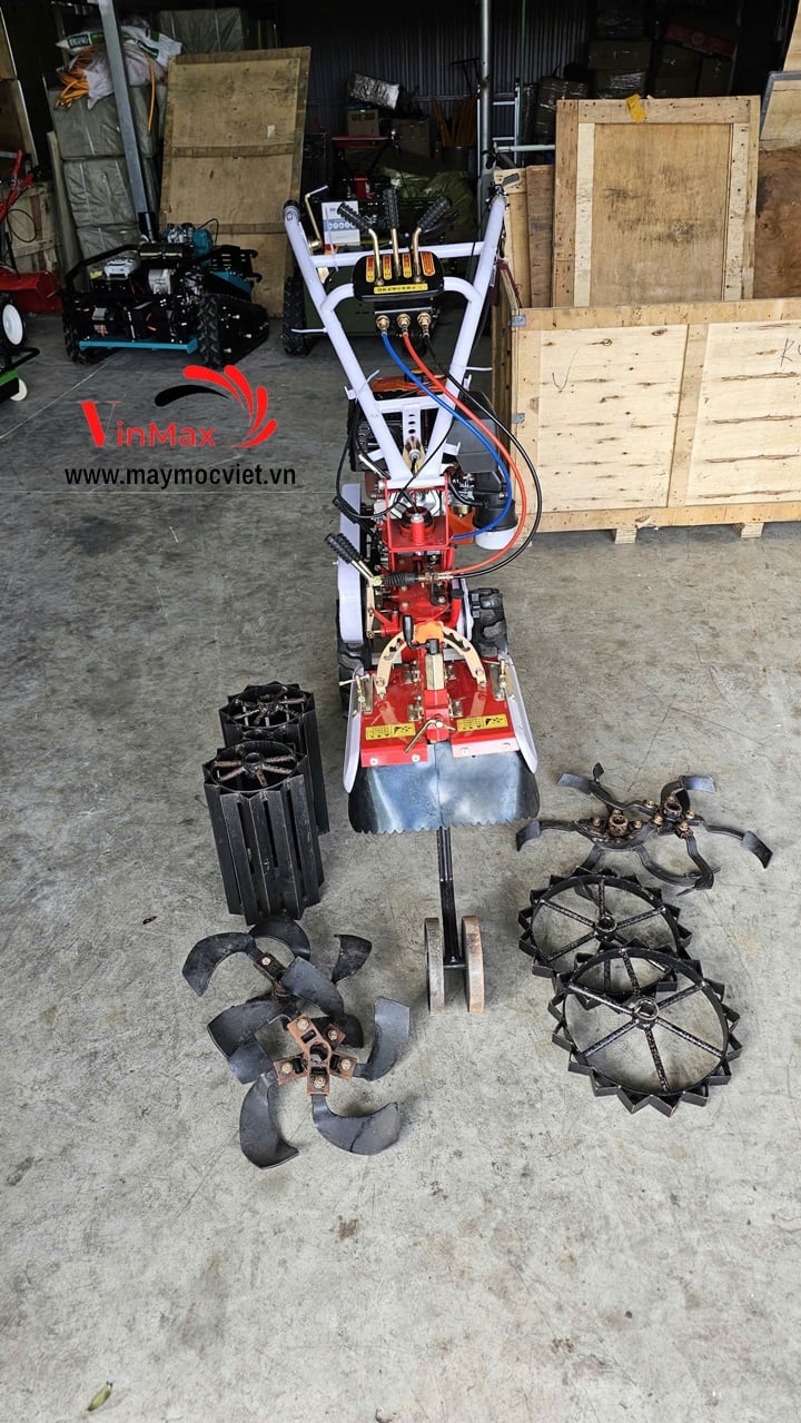 Phụ kiện đi kèm: Bộ lưỡi xới, bánh lồng, lưỡi tạt luống, bánh cao su